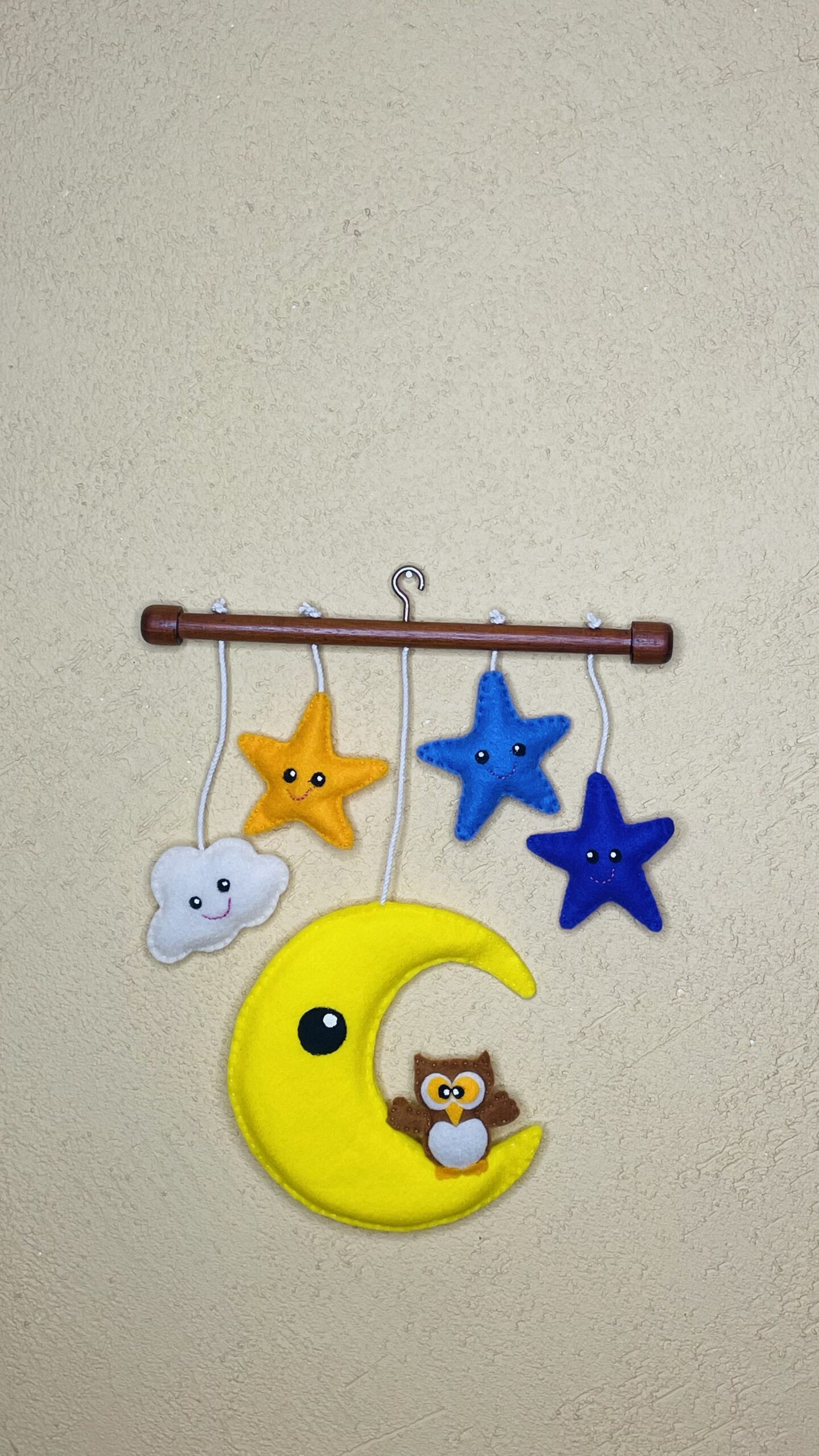 Articulo decorativo para cuarto bebe hecho a mano, con luna, estrellas y nubes.