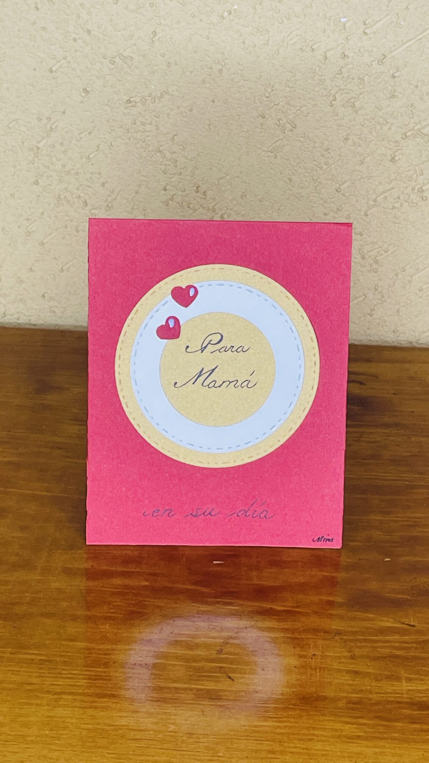 Tarjeta de felicitación para mamá, realizada a mano en cartulina especial y de tamaño personal