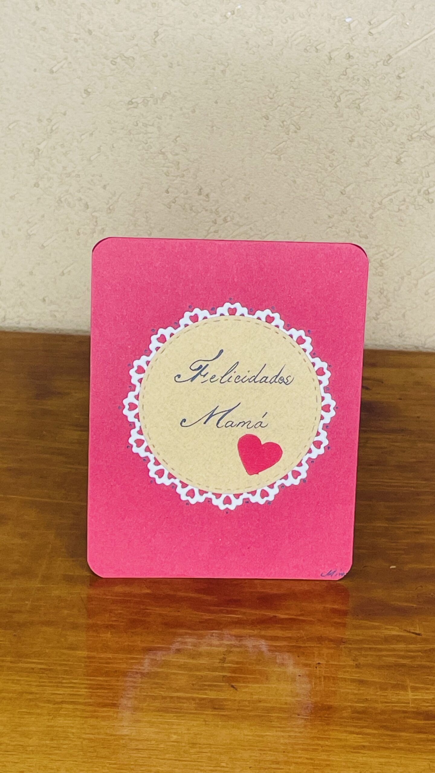Tarjeta de felicitación para mamá, realizada a mano en cartulina especial y de tamaño personal